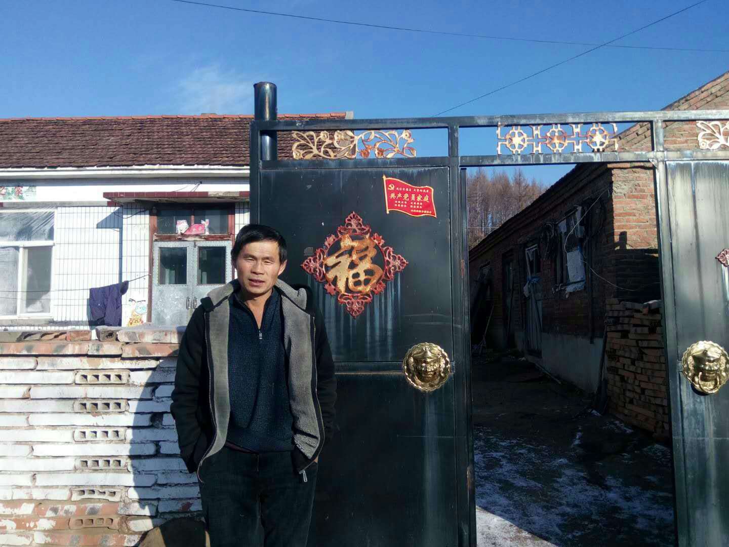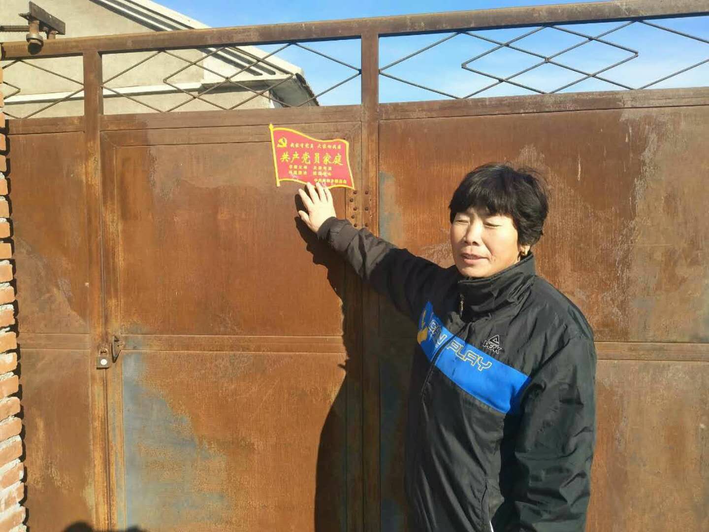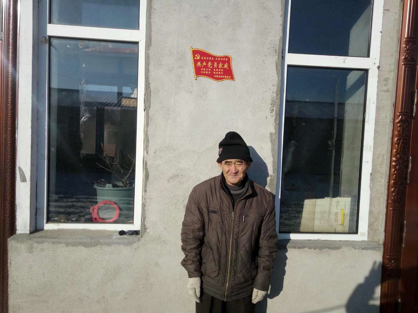 11月15日,共和乡碱场村68岁老党员李宜昌家黑色大门上挂上了鲜红的“共产党员家庭”牌子,引得不少群众围观。